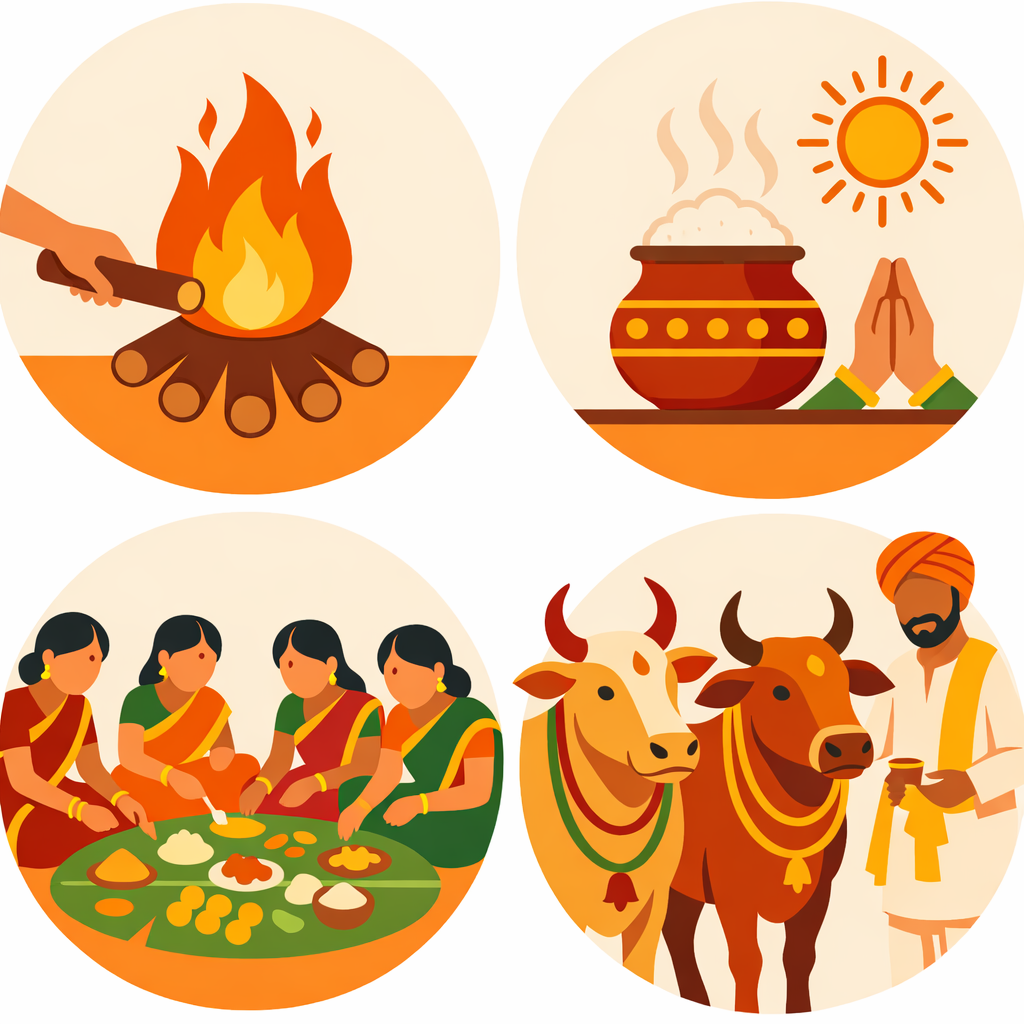 Pongal Festival begins with Bhogi, a day of cleaning and discarding old belongings for a fresh start.